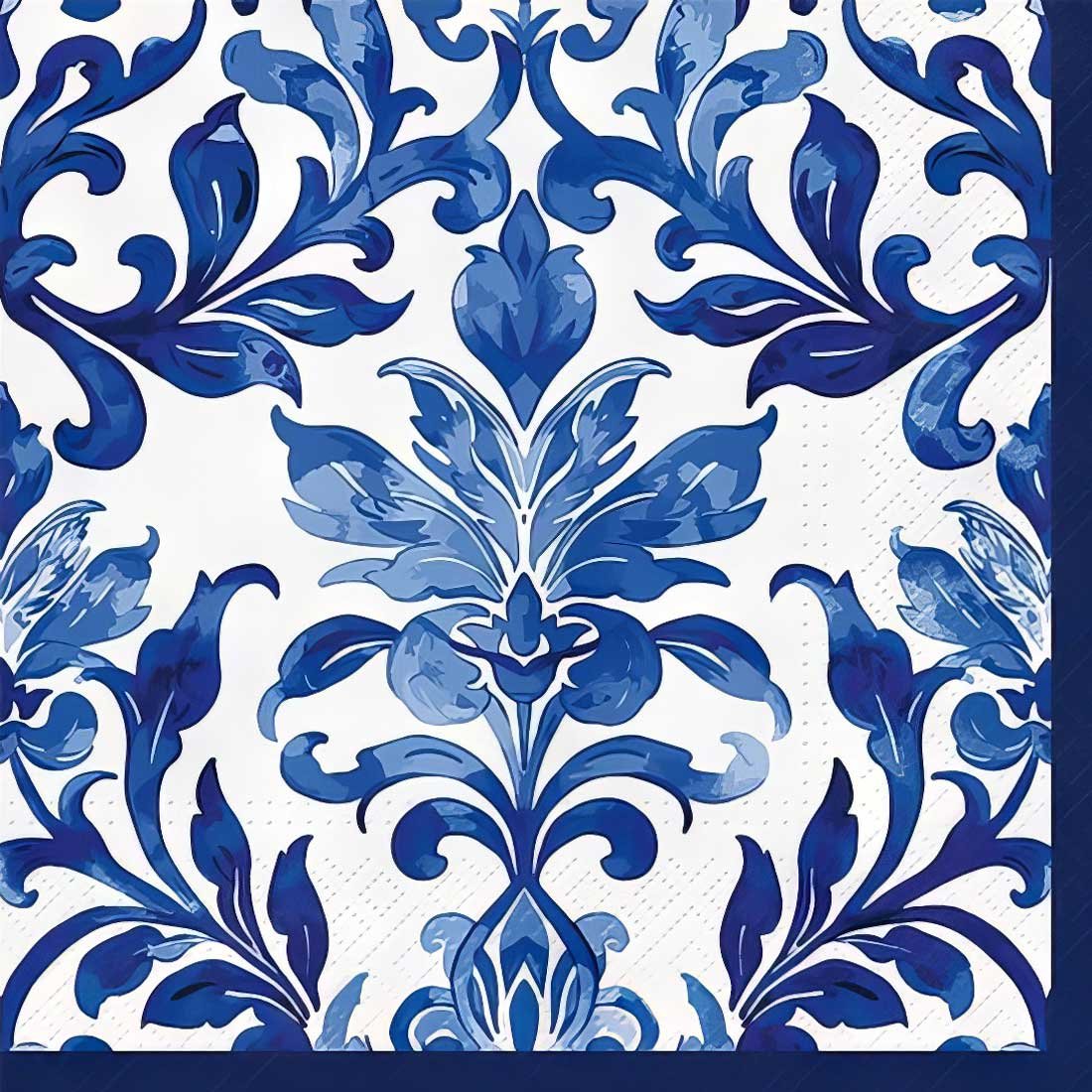 This elegant decoupage paper napkin features a classic ornamental pattern inspired by traditional damask and Mediterranean tile designs.