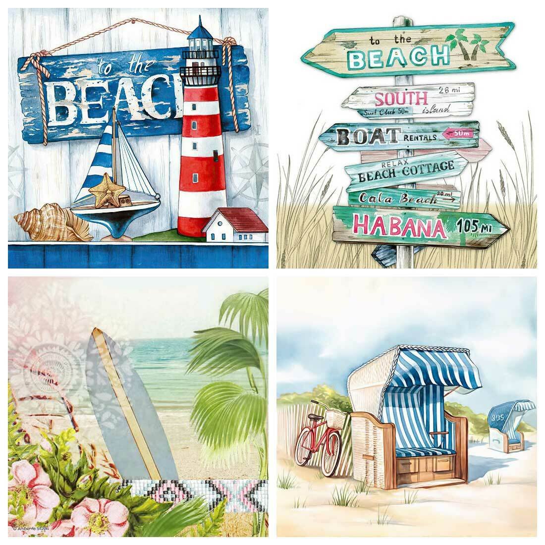 Decoupage Paper Napkins – Beach Theme (4 Sheets)