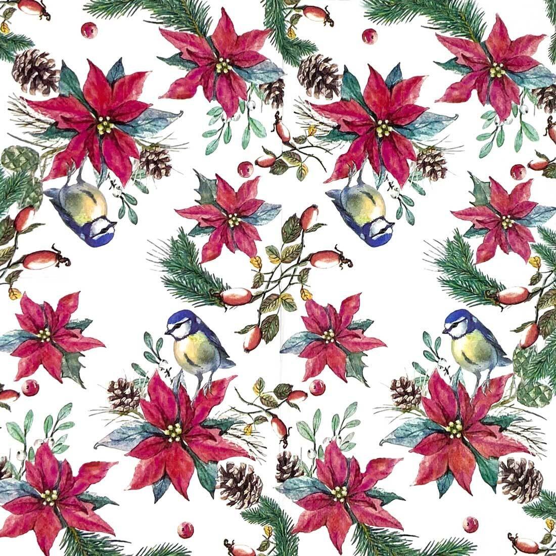 Decoupage Paper Napkins – Bird On Poinsettia White