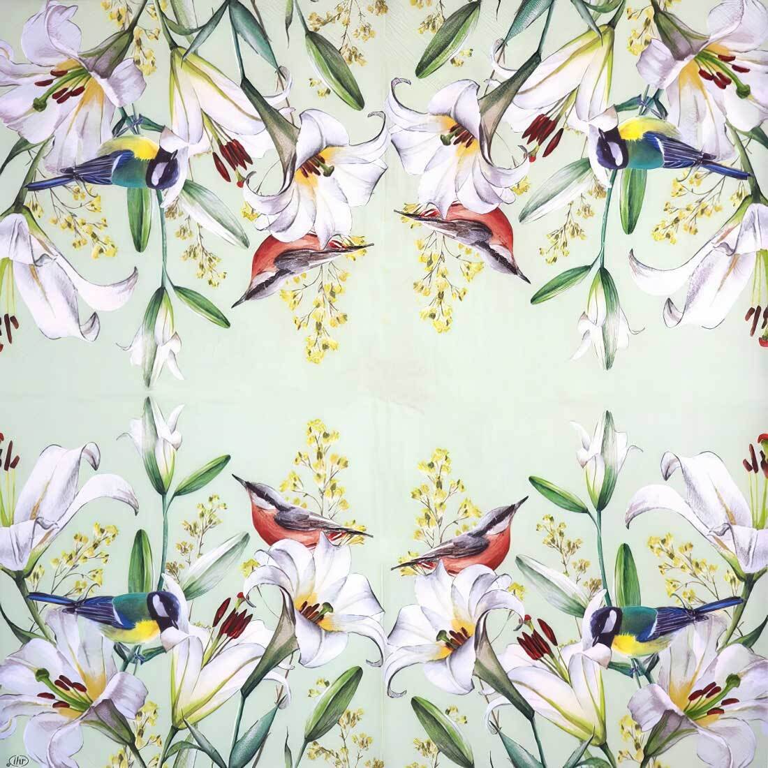 Decoupage Paper Napkins – Birds In Lilies Light Green