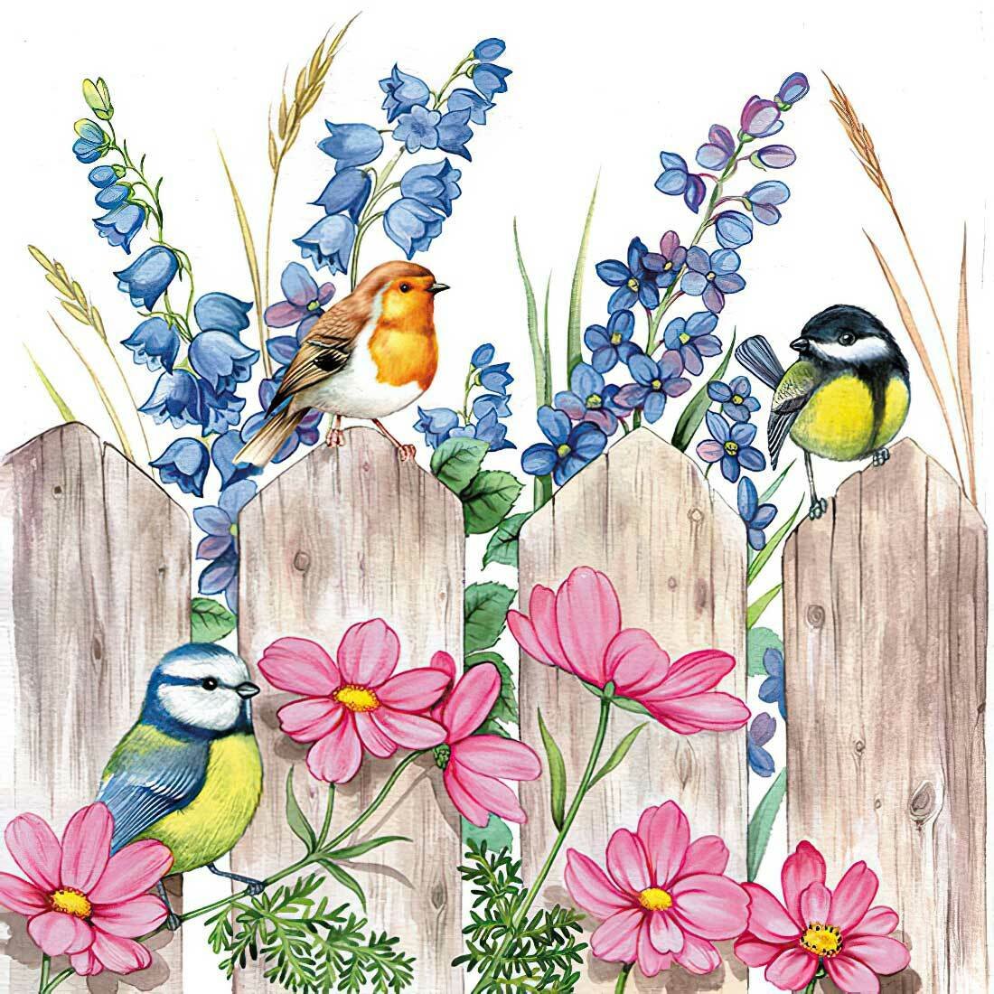 Decoupage Paper Napkins – Birds On A Fence