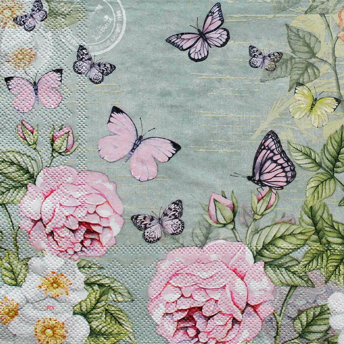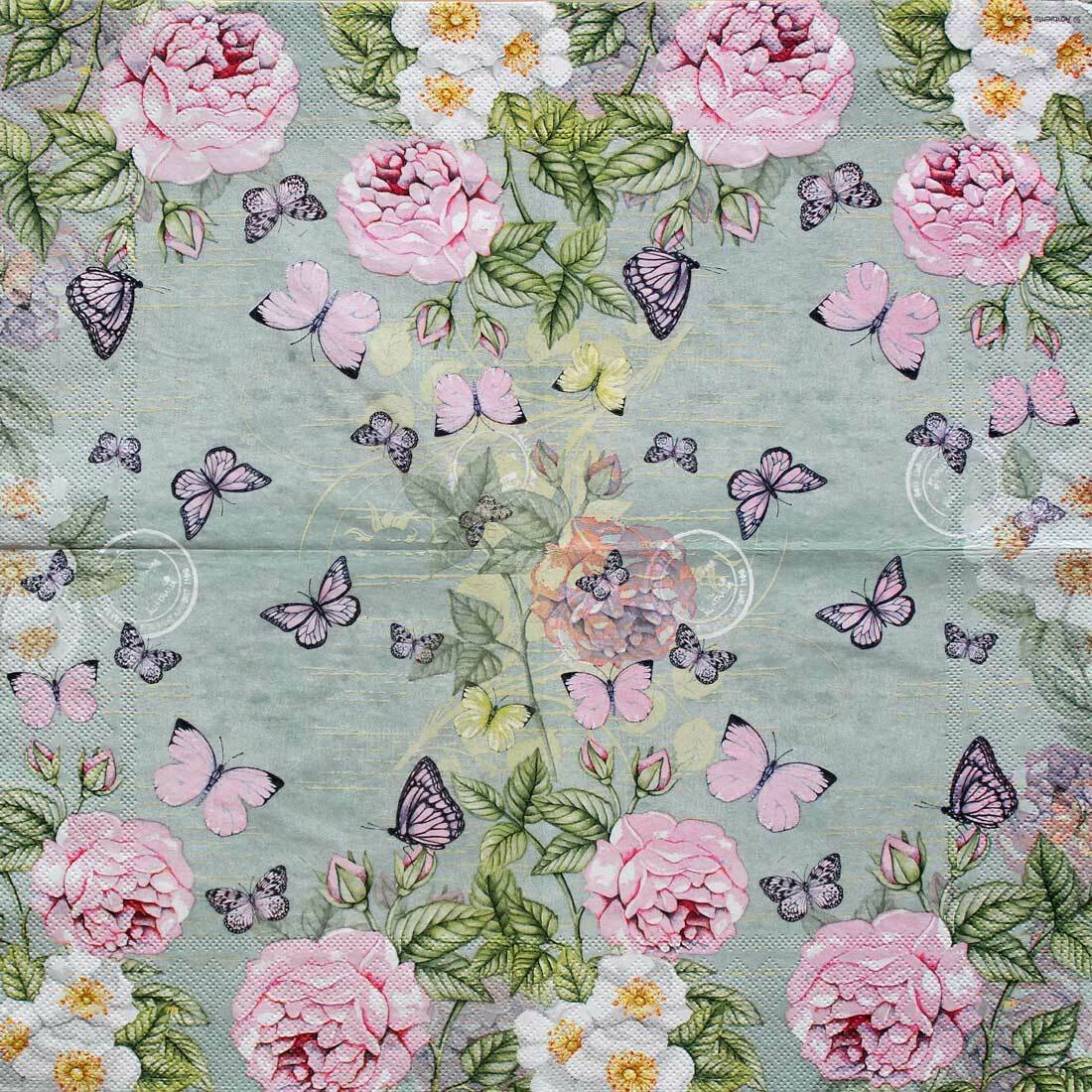 Decoupage Paper Napkins – Botanical Green with Butterflies