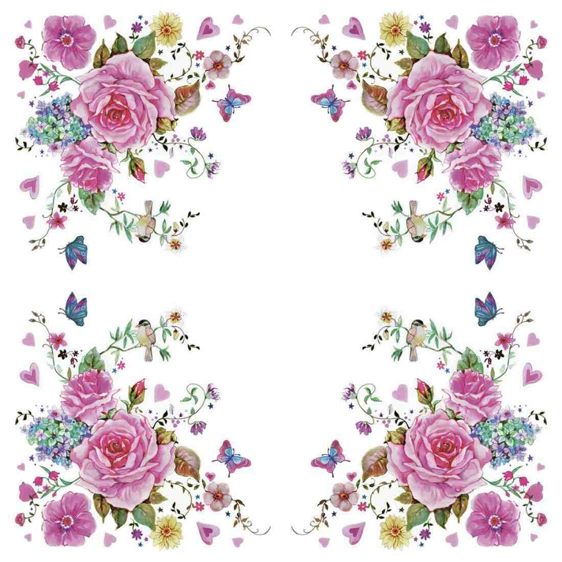 Decoupage Paper Napkins – Drawn Roses with Butterflies