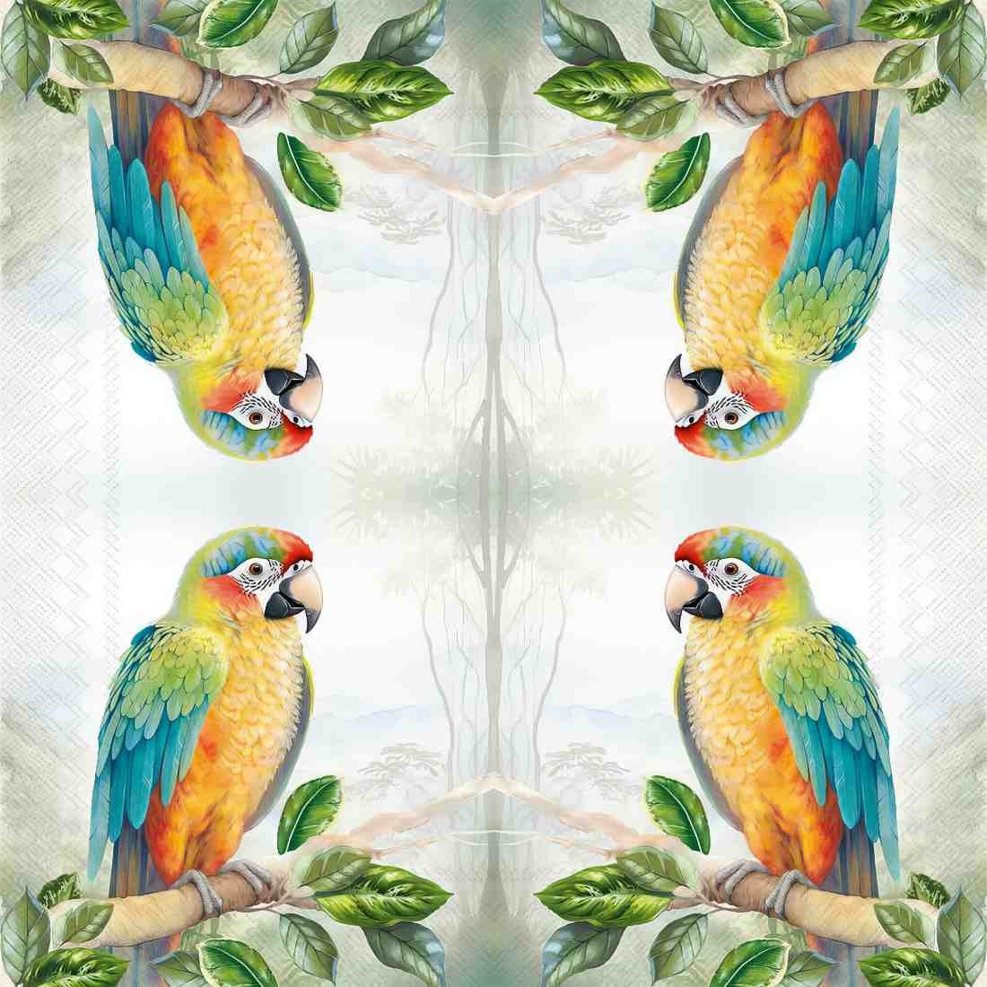 Bring a burst of tropical charm to your crafts with this vibrant decoupage paper napkin featuring a stunning macaw perched gracefully on a branch. With rich hues of turquoise, orange, yellow, and green, the detailed artwork captures the exotic beauty of the rainforest. Perfect for nature-inspired projects, jungle-themed décor, or adding a splash of color to any creative piece.