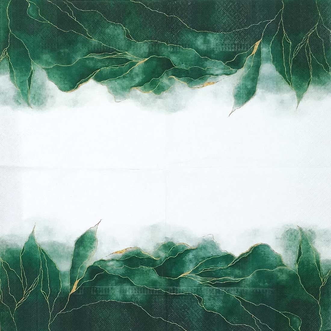 Bring the tranquility of nature to your crafts with our “Green Dream” decoupage tissue paper. The design features a beautiful watercolor effect with lush, deep green foliage and delicate gold outlines. The pattern creates a serene, layered look with a white space in the middle.