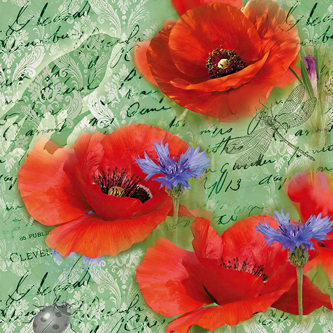Decoupage Paper Napkins – Painted Poppies Green
