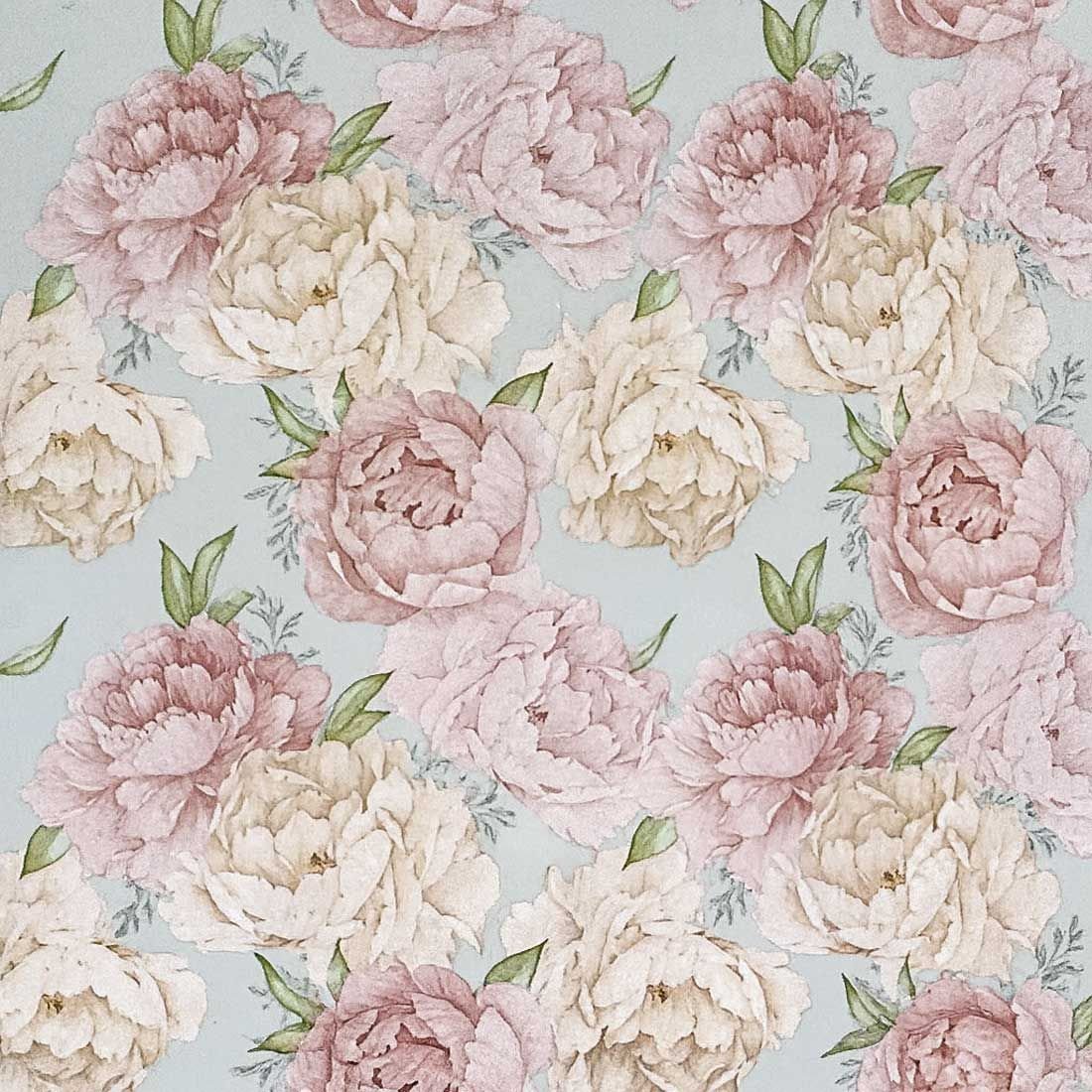 Add a touch of timeless romance to your creations with this elegant floral decoupage napkin. Featuring soft blush pink and ivory peonies with delicate green leaves, this vintage-inspired design brings sophistication and charm to any craft project. Perfect for decorating trays, bottles, boxes, and furniture with a shabby-chic or French-country feel.