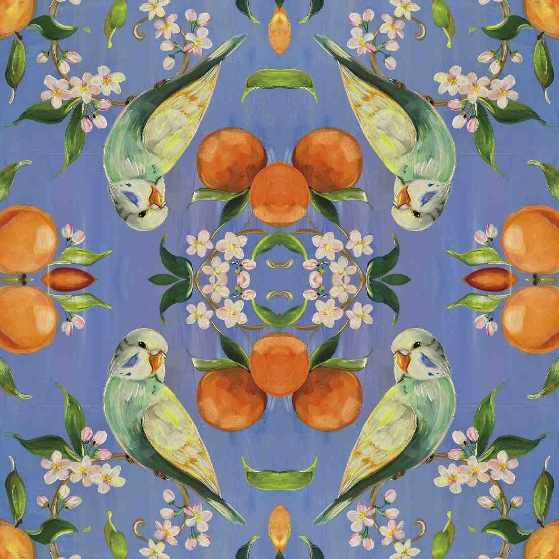 Add a burst of tropical charm to your creative projects with this lively decoupage paper napkin. Featuring a beautifully illustrated green parakeet perched among delicate white blossoms and ripe oranges against a bold periwinkle-blue background, this design is a perfect blend of exotic flair and botanical elegance. Ideal for decoupage, journaling, mixed media art, or brightening up table settings, it brings color, cheer, and a touch of nature’s whimsy to every surface.