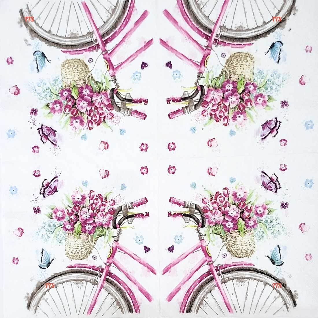 Decoupage Paper Napkins – Pink Bicycle with Basket