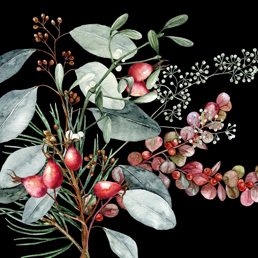 Decoupage Paper Napkins – Ruusunmarja & Lehdet Black