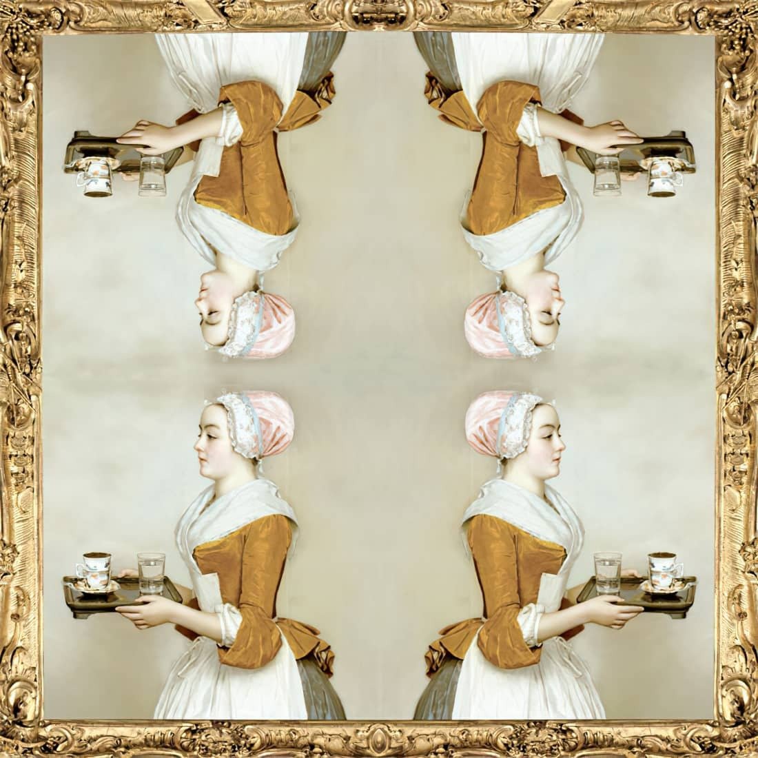 The Chocolate Girl is one of the most prominent pastels of Swiss artist Jean-Étienne Liotard, showing a chocolate-serving maid. The girl carries a tray with a porcelain chocolate cup and a glass of water. Liotard’s contemporaries classed The Chocolate Girl as his masterpiece. What better way is there to capture art within art.