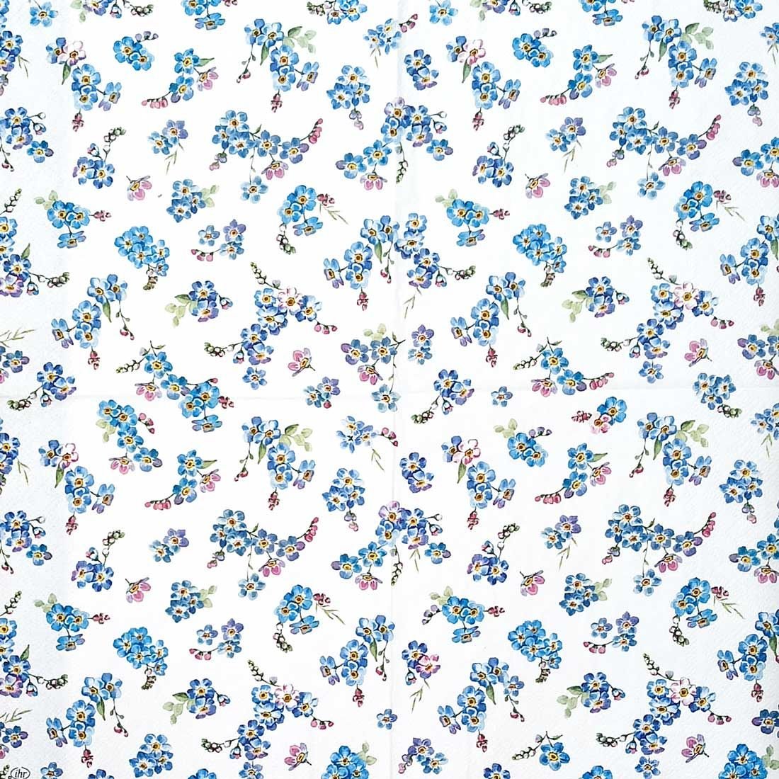 Add a touch of delicate charm to your creative projects featuring a graceful scatter of watercolor-style blue blossoms with soft lilac and yellow accents, this design brings a refreshing springtime elegance to any surface. The crisp white background enhances the dainty floral clusters, creating a clean and timeless look perfect for any decor style.